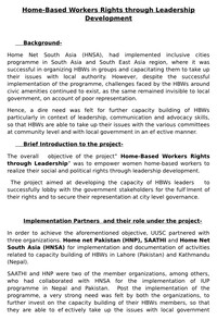 Homebased Workers are among the most vulnerable of all urban informal workers. They work within or near their homes as own account (self-employed) or subcontracted workers. Because they work in their...